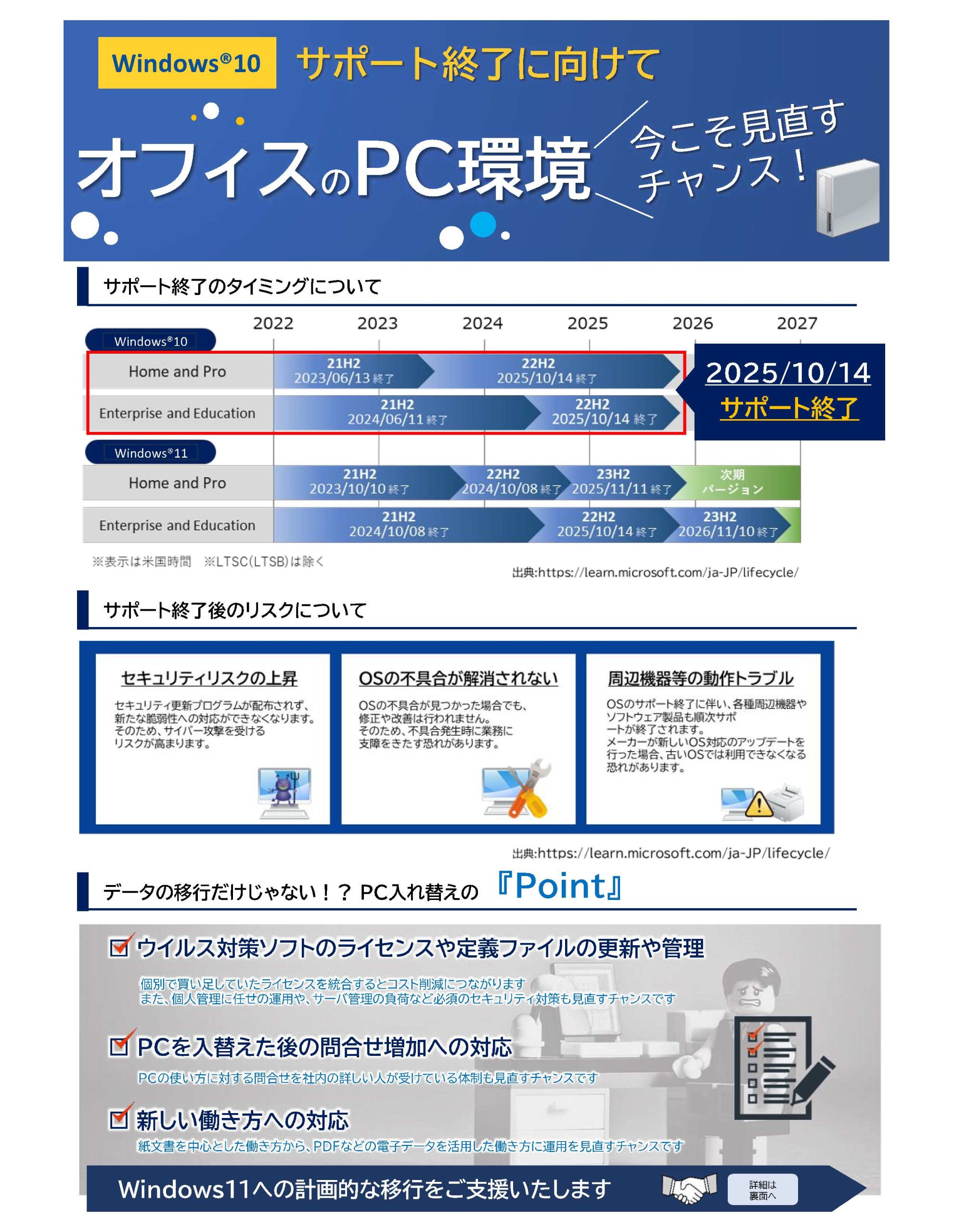 Windows10 は2025年10月14日でサポートが終了します